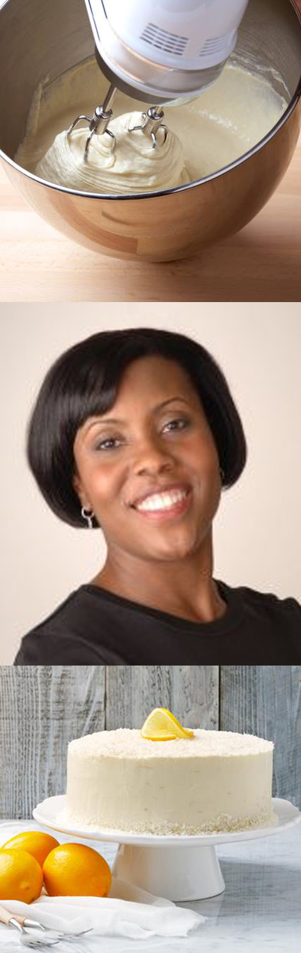 Donna uses The Perfect Purée Mango Puree and Meyer Lemon Concentrate in her Lemon Zest Cake with Meyer Lemon-Mango Fruit Curd, as well as The Perfect Purée Passion Fruit and Key Lime Concentrate in the prepared Lime-Passion Fruit Curd for her Toasted Coconut Cake.