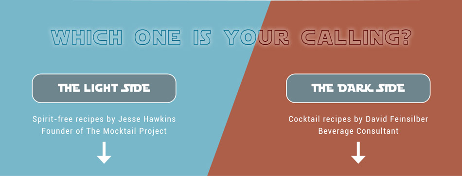 A long time ago in a galaxy far far away, Jesse Hawkins of The Mocktail Project and Beverage Consultant David Feinsilber of Los Angeles engaged in a battle of galactic libations. The fate of the galaxy now lies in your hands to explore the flavor of the light and dark sides.