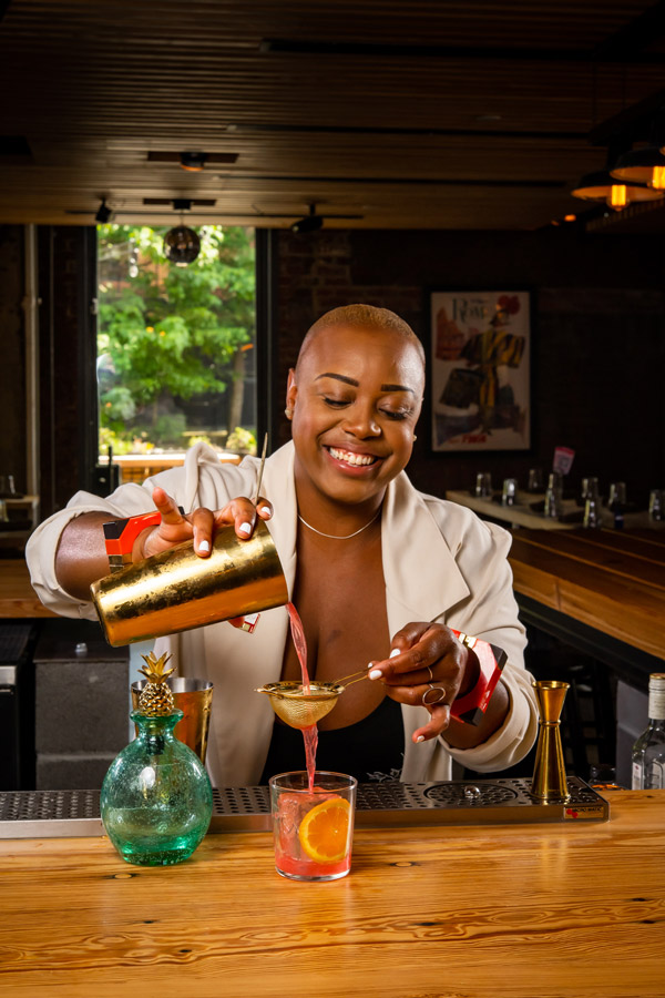 “I very rarely feel the need to talk about the kind of woman I am or the type of Black person I am,” she says. “I just want to continue to be an example for and testimony to hospitality and culture. Every cocktail has a great story and even though we’re not behind the bar right now we still have space to be polite and tell stories.”