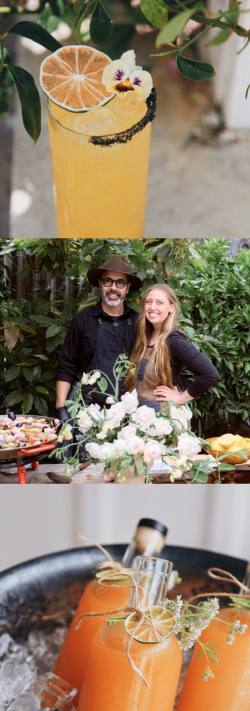 Slate Catering is inspired by local farmer’s markets as well as the flavors of the world, particularly Spanish, Mexican, and Californian cuisine. They are known for incorporating fresh herbs and flowers from local farmers in every plate and glass, including their menu of hand-bottled cocktails, all garnished with color-coordinated botanicals. A top seller is their Heat of Passion margarita.