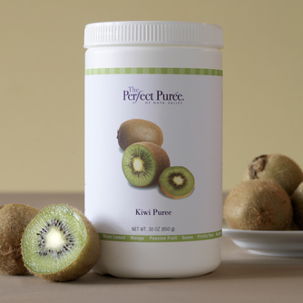 This fruit's emerald green pulp is its most outstanding feature. Sweet-tart in flavor, our Kiwi puree possesses both the fruit’s appealing visual characteristics and distinctive clean flavor. Small black seeds enhance its color further. This puree is a showstopper when presented on a white plate or in these easy recipes for soups, sauces, desserts, and mixed drinks!
