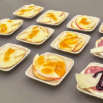 - Layer the ingredients in the following order: CaPeachio’s Butter Cracker, apple slice, Manchego cheese and The Perfect Purée Apricot puree.