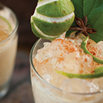 | Combine sugar and concentrate to make syrup. Then shake all ingredients, except garnish and Pellegrino, and pour over crushed ice. Top with Pellegrino. Garnish with pineapple leaves. | |