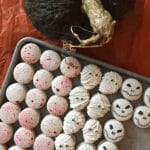 | 11. | To decorate, use red gel food color, place 8 drops onto a plate and dip a pastry brush or similar tool into the food color spatter onto macaron shell for the blood effect. Alternatively, you can color the macaron shell red. |