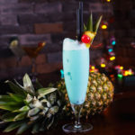 1. Shake all ingredients in a Boston shaker with ice. Strain into a chilled cocktail glass. Garnish with a pineapple clip and a cherry.