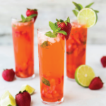 Combine and stir Yuzu Luxe Sour blend and lemonade until blended and set aside. Wash and slice strawberries build in Collins glass with ice. Add Yuzu Luxe Sour/lemonade mixture, gin and Pimms. Garnish with a peeled English Hot House cucumber. Serve.