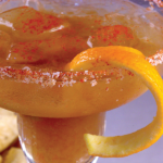1. Combine ingredients into a mixing glass with ice. Shake with a Boston Shaker. Strain into an ice filled margarita glass rimmed with salt and crushed and dried orange peels. Garnish with 3 lime wheel floats. Serve.