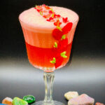 - Double strain into a stemmed glass and garnish with edible flowers.