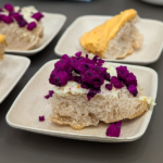 - Spread on an Original Sunshine Bagel and garnish with Tastecraft Dragon Fruit Crumble. Enjoy!