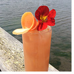 | Add tequila, liqueur, grapefruit juice, lime juice, and Pink Guava Puree to mixing glass, add ice, lightly shake, then strain over fresh ice into Collins glass. Garnish with large pink grapefruit twist and nasturtium. | |