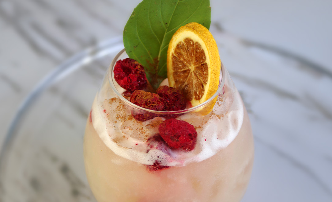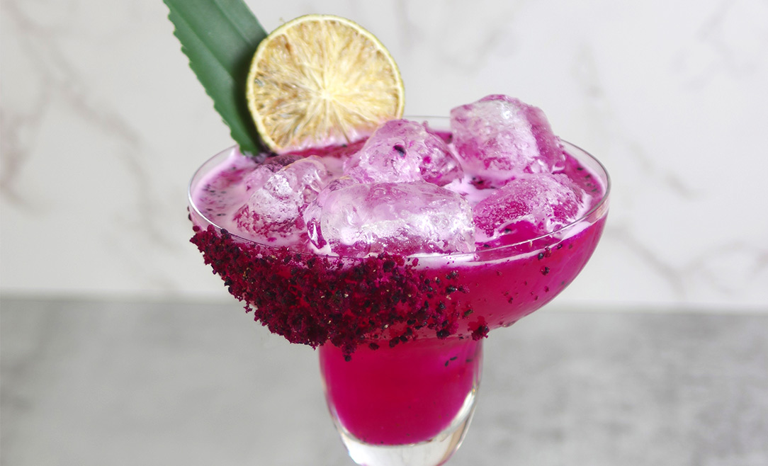 Freeze-dried fruit is a creative garnish for cocktails and spirit-free offerings. It can also be floated in the drink or blended into smoothies. You can also process freeze-dried fruit into a fine powder to use it as a glass rimmer.